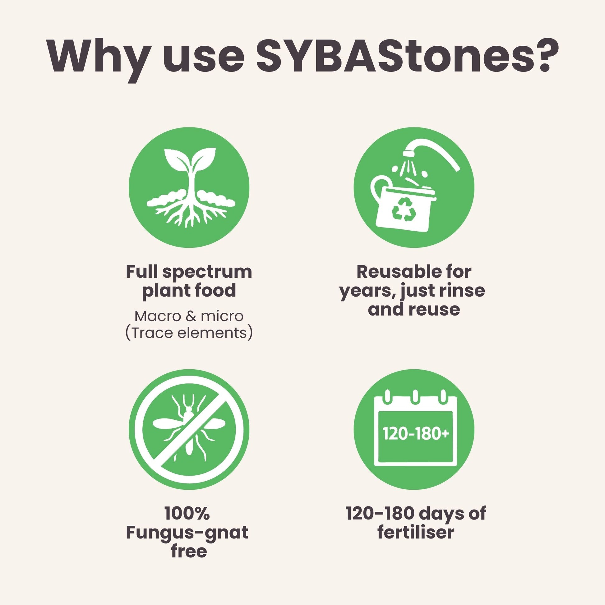 Our other SYBAStones Houseplant already contains fertiliser for up to 6 months, so no extra fertiliser is needed until after 6 months of using the mix.