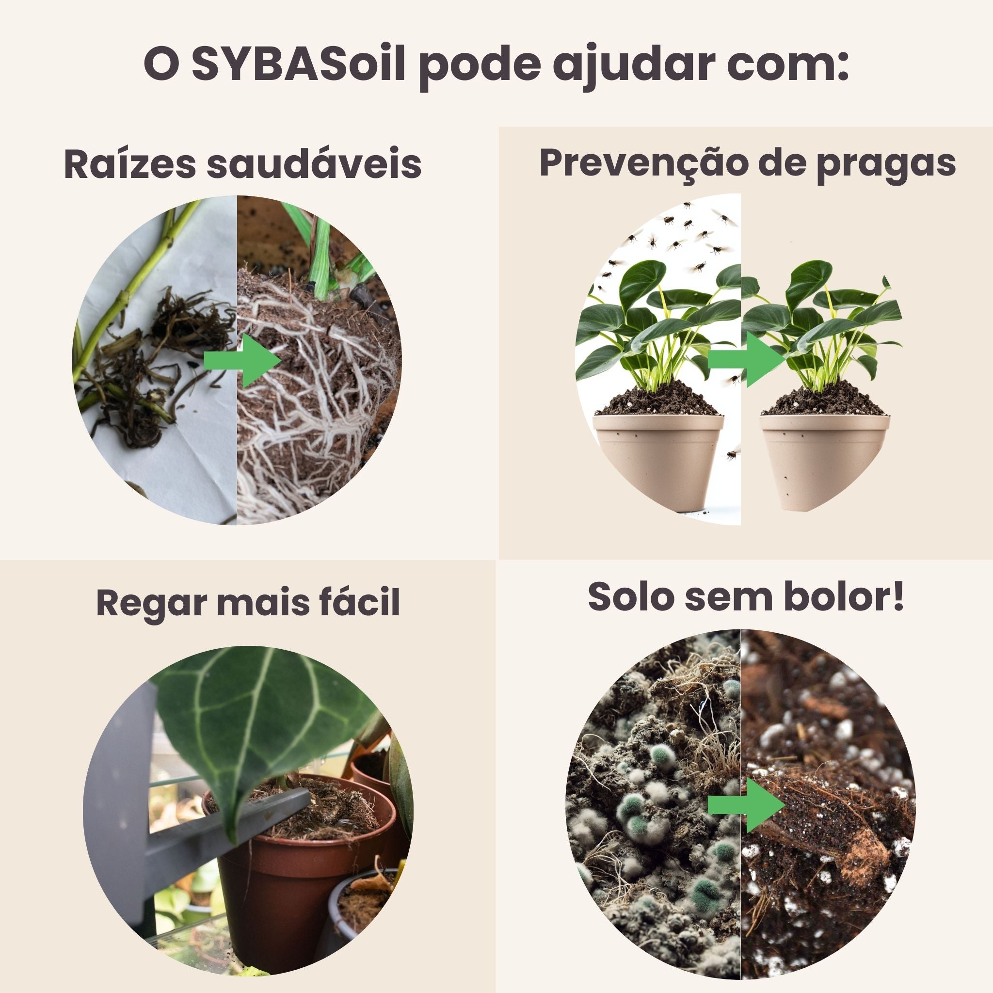 SYBASoil não é só terra. É uma mistura personalizada, feita à mão na Holanda e criada para imitar os habitats reais de onde as tuas plantas vieram.