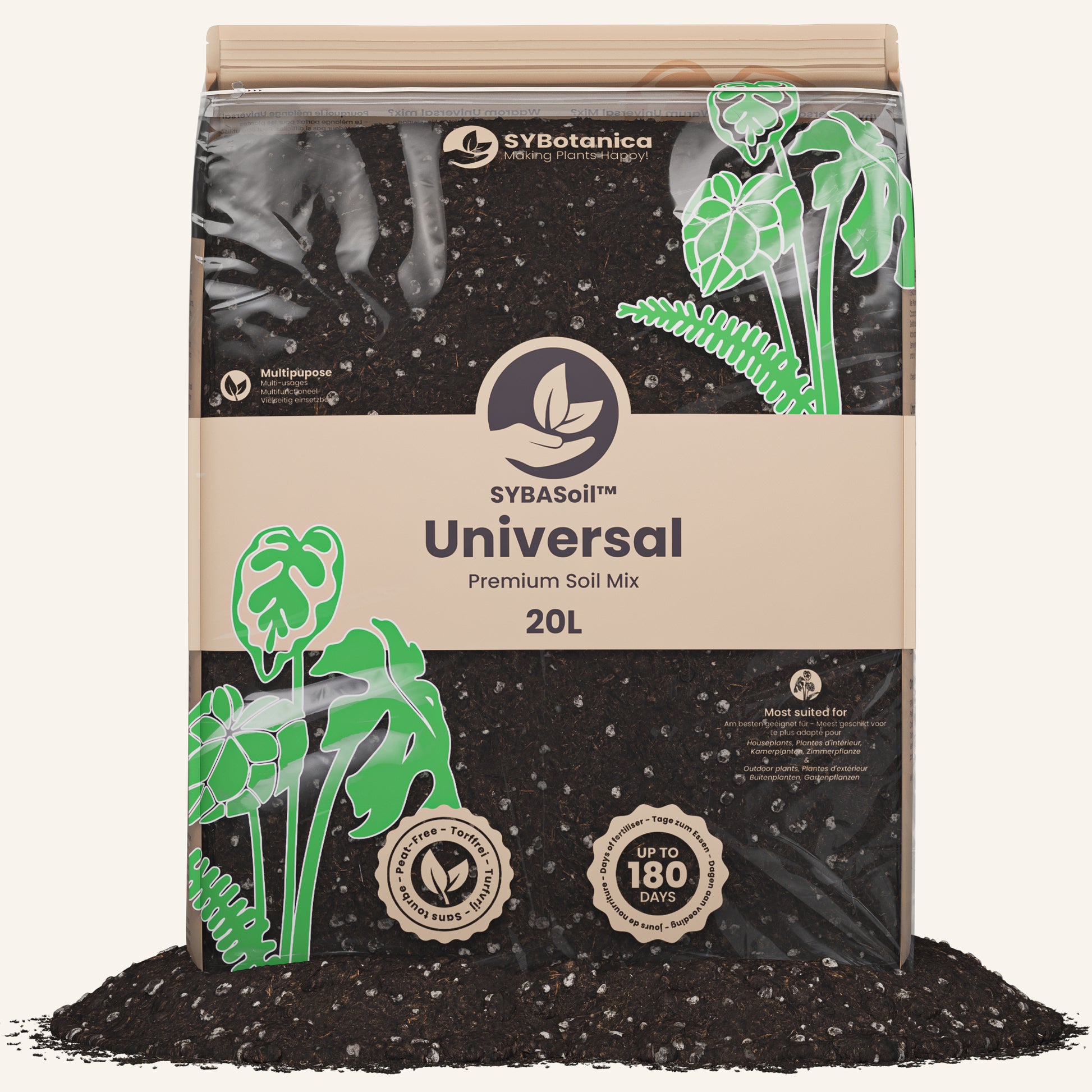 Para o Amante de plantas que quer os benefícios de SYBASoil, mas não quer usar misturas diferentes para cada planta! Beneficie desta mistura de terra para plantas de interior sem turfa, cheia de Húmus de minhoca. A mistura perfeita para Plantas de interior que não são tão exigentes. Pode ser usada para a maioria das plantas se as cuidar corretamente.